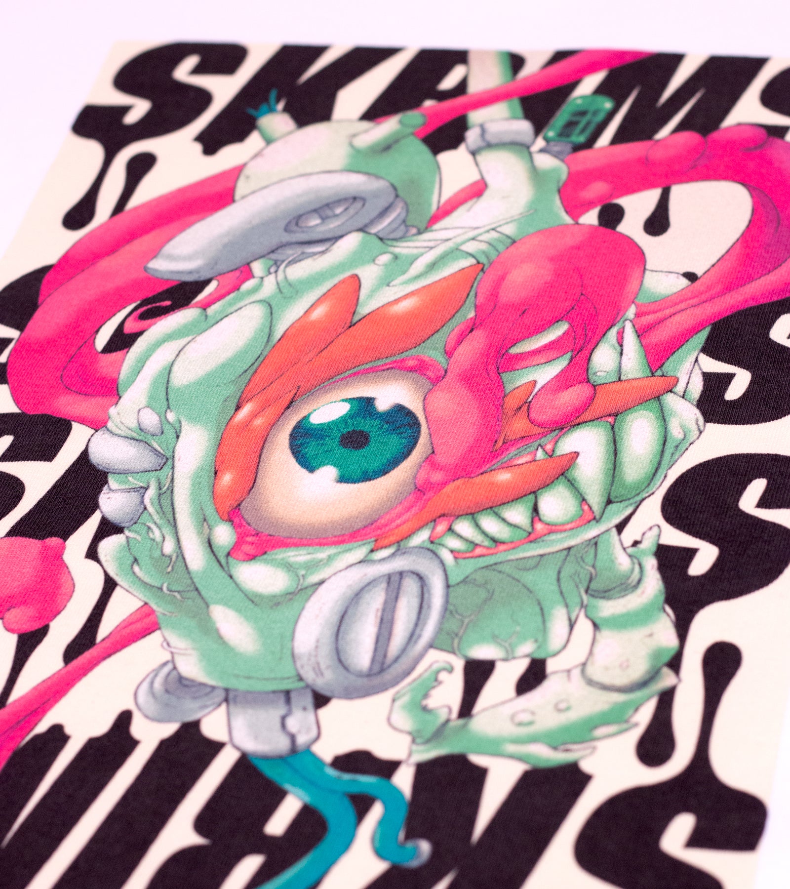 アパレルやグッズに加えて、SKRIMSのメインアーティスト『monster381』のシルクスクリーン作品も販売します!