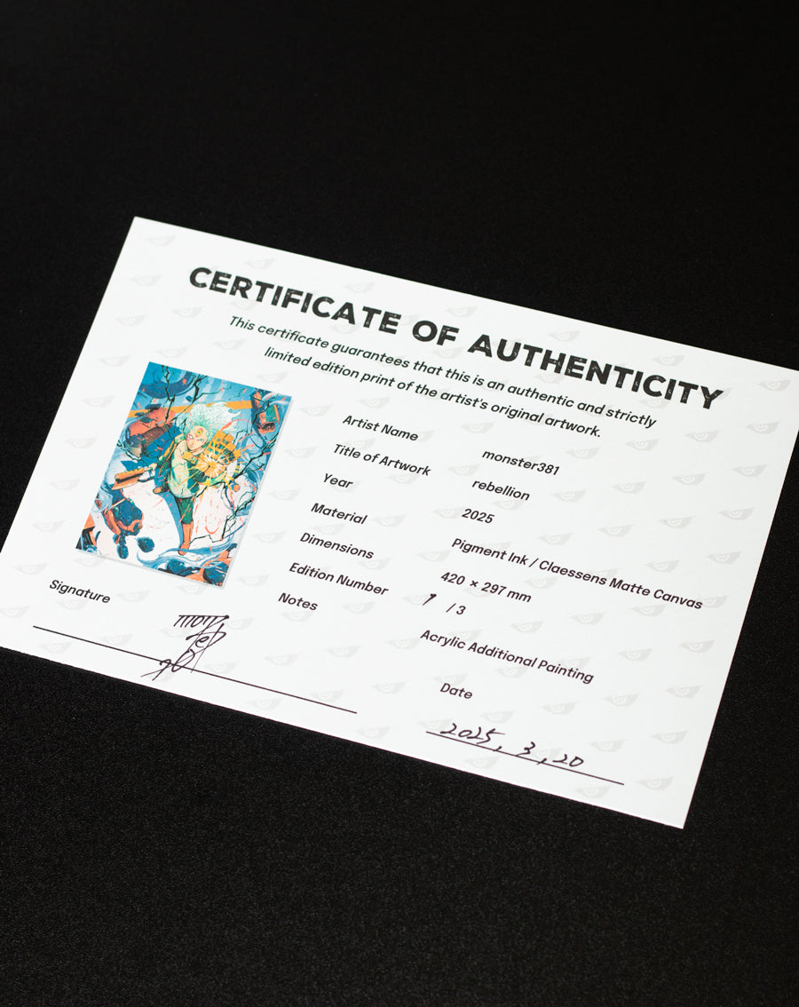裏面にはmonster381の直筆サインとエディション番号が記載されてます。